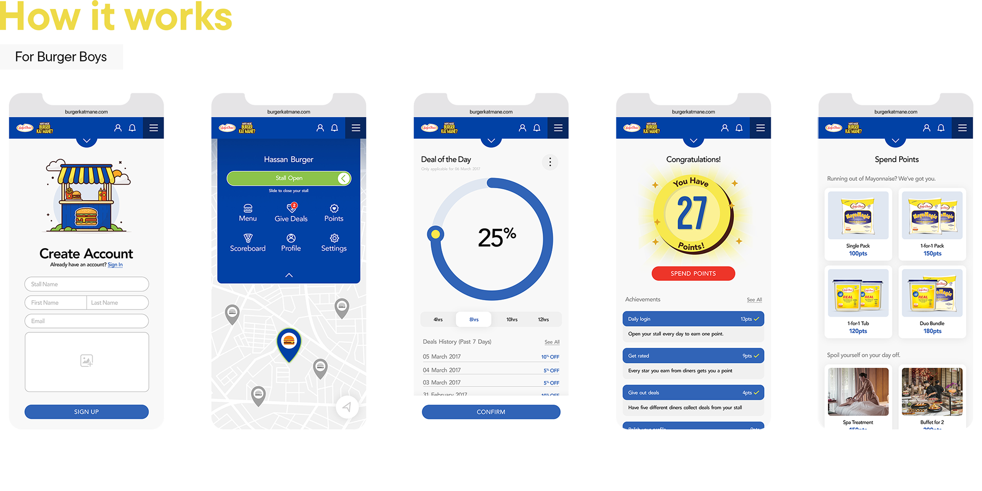 The result was “Burger Kat Mane?” (“Where’s My Burger?”), a mobile-optimised platform that turned Lady’s Choice into a connector within Malaysia’s street-burger culture. Burger vendors were given free digital visibility to showcase their creations, while hungry consumers could instantly discover nearby burger stalls—often hidden, informal, and word-of-mouth driven.