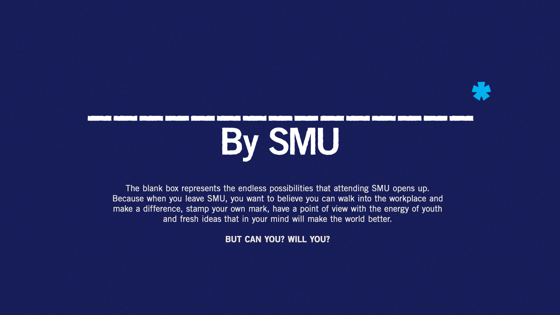 On recruitment day or their first day, students can fill in the blank with a word that captures who they hope to become. It’s a fun, personal way to celebrate every student’s unique ambitions while highlighting the SMU difference.
